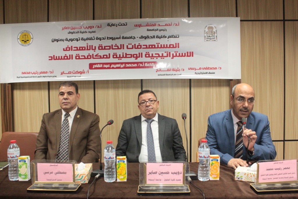 تحت رعاية الدكتور أحمد المنشاوي رئيس جامعة أسيوط؛ نظمت كلية الحقوق، اليوم الثلاثاء الموافق ١٩ من نوفمبر، فعاليات ندوة تثقيفية بعنوان "المستهدفات الخاصة بالأهداف الاستراتيجية الوطنية لمكافحة الفساد"، بحضور الدكتور دويب صابر عميد كلية الحقوق، والدكتور معمر رتيب محمد وكيل الكلية لشئون خدمة المجتمع وتنمية البيئة، والدكتور مصطفي مرسي مدير عام الإدارة العامة لنظم المعلومات والتحول الرقمي، ومنسق تنفيذ الاستراتيجية لمكافحة الفساد لجامعة أسيوط، وذلك ضمن سلسلة الندوات التي أطلقتها الجامعة؛ لتعريف العاملين بأهداف الاستراتيجية الوطنية لمكافحة الفساد.