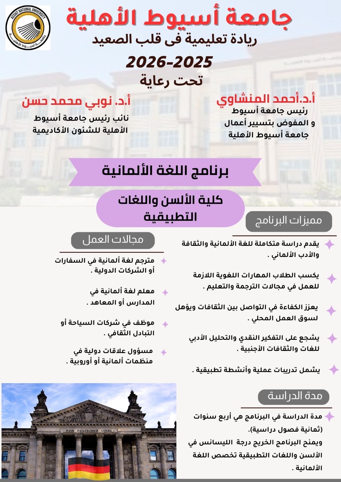 جامعة أسيوط الأهلية تطرح برنامج «اللغة الألمانية» للعام الجامعي 2025/2026