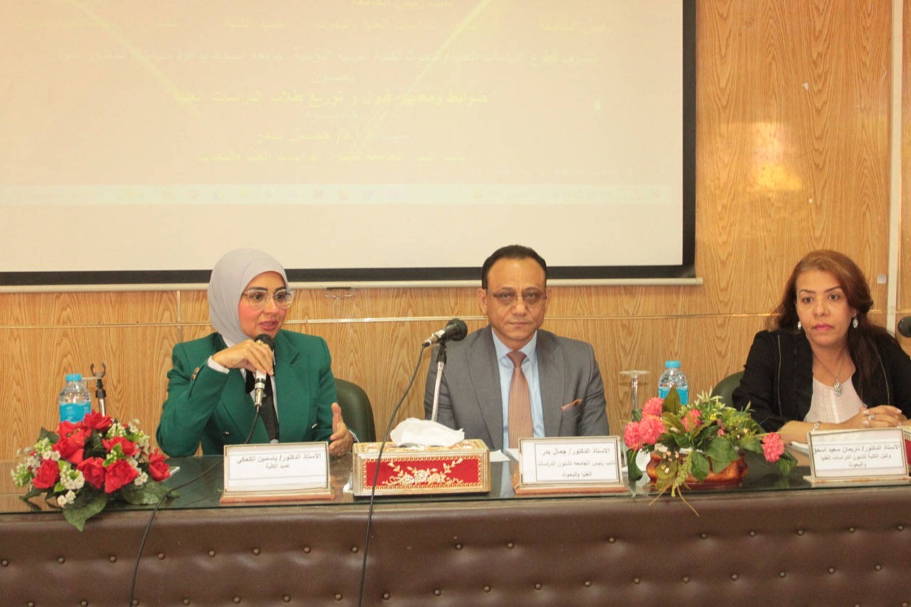 جامعة أسيوط تنظم ندوة حول "ضوابط ومعايير قبول وتوزيع طلاب الدراسات العليا" بكلية التربية النوعية