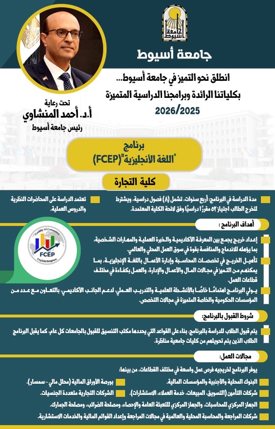 جامعة أسيوط تقدم برنامج اللغة الإنجليزية بكلية التجارة للعام الجامعي 2025/2026