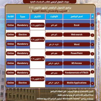 يعلن مركز تنمية قدرات أعضاء هيئة التدريس والقيادات بجامعة أسيوط، جدول التدريب الخاص بدورات "التحول الرقمي لطلاب الدراسات العليا"، تحت رعاية الدكتور أحمد المنشاوي رئيس جامعة أسيوط، وإشراف الدكتور جابر…