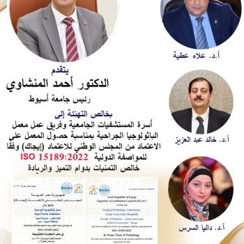 وأعرب الدكتور المنشاوي عن فخره بهذا الإنجاز الذي يعكس التزام الجامعة بمعايير الجودة الدولية، مؤكدًا دعمه المستمر لتطوير البنية التحتية للمعامل الطبية وتعزيز خدماتها.   كما توجه بخالص الشكر والتقدير…