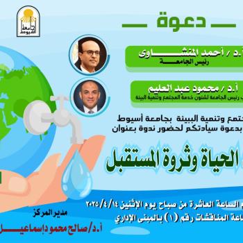 في إطار الاحتفال باليوم العالمي للمياه.. جامعة أسيوط تنظم ندوة توعوية بعنوان "المياه مورد الحياة وثروة المستقبل" في 14 أبريل المقبل تنظم جامعة أسيوط، تحت رعاية الدكتور أحمد المنشاوي، رئيس الجامعة؛…
