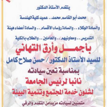 ومعاونيهم والعاملين والطلاب بالكليةبأجمل وأرق التهانيللسيد الأستاذ…