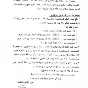 تقرر اقامة حلقة النانو تكنولوجى من الأحد 15 ديسمبر الى الخميس 19 دديسمبر 2013 وذلك فى فترة مسائية من الساعة السادسة الى الساعة التاسعة مساء يوميا بمقر الجمعية (28 ش رمسيس-القاهرة )وفى فترة صباحية من…