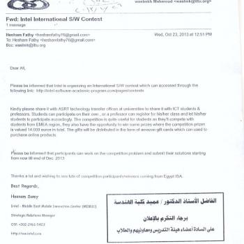 تنظم شركة انتل مسابقة عالمية و يمكن الدخول عليها من خلال هذا الرابطhttp://intel-software-academic-program.com/pages/contestsيرجى التكرم بمشاركة هذا الإعلان مع مكتب نقل و تسويق التكنولوجيا و …