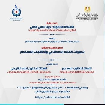برعاية الدكتور أيمن عاشور وزير التعليم العالي والبحث العلمي، تدعو أكاديمية البحث العلمي والتكنولوجيا السادة المتخصصين والمهتمين والباحثين في مجال الاتصالات وتكنولوجيا المعلومات والذكاء الاصطناعي،…