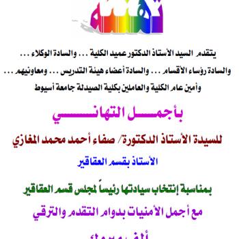 التهنئة للسيد الاستاذ الدكتور محمد عبد السميع عيد على توليه منصب…