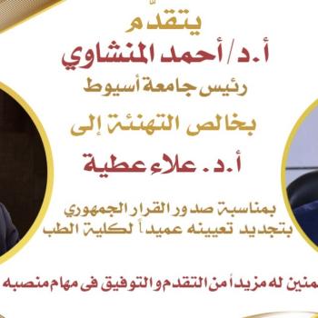 قدَّم الدكتور أحمد المنشاوي، رئيس جامعة أسيوط، التهنئة للدكتور علاء محمد أحمد عطية بمناسبة صدور القرار…