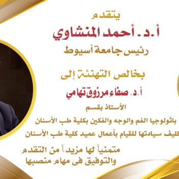 أصدر الدكتور أحمد المنشاوى رئيس جامعة أسيوط، قراراً؛ بتجديد تكليف الدكتورة صفاء مرزوق تهامى الأستاذ بقسم باثولوجيا الفم والوجه والفكين، بكلية طب الأسنان بالجامعة، للقيام بعمل عميد كلية طب الأسنان…