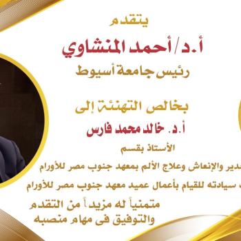 أصدر الدكتور أحمد المنشاوي رئيس جامعة أسيوط؛ قراراً؛ بتكليف الدكتور خالد محمد فارس الأستاذ بقسم التخدير والإنعاش وعلاج الألم؛ بمعهد جنوب مصر للأورام؛ للقيام بعمل عميد المعهد؛ لحين تعيين عميد للمعهد…