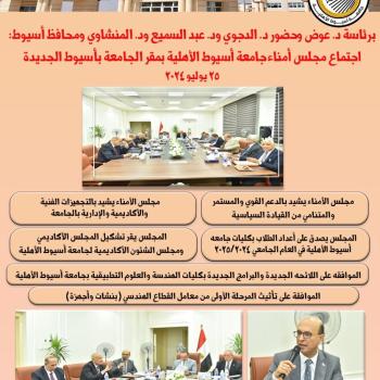 تحت رعاية الدكتور أحمد المنشاوي رئيس جامعة أسيوط، وبحضور اللواء الدكتور/ هشام أبو النصر محافظ أسيوط، تطلق جامعة أسيوط، غداً الأربعاء الموافق ٢٤ من يوليو، في تمام الساعة التاسعة صباحاً، بقاعة…