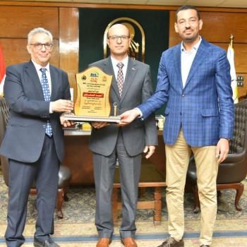 أهدت كلية التجارة بجامعة أسيوط؛ درعاً تكريمياً من برنامج نظم معلومات الأعمال(BIS)؛ للدكتور أحمد المنشاوي رئيس جامعة أسيوط، اليوم الثلاثاء 23 من يوليو، قدمه الدكتور علاء عبدالحفيظ عميد كلية التجارة؛…