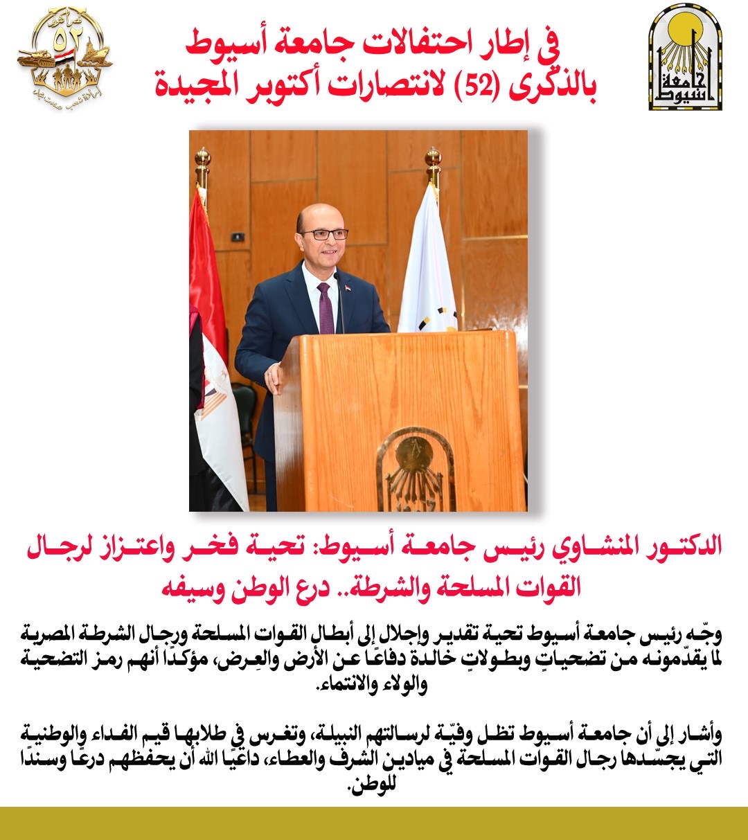 في إطار احتفالات جامعة أسيوط بالذكرى (52) لانتصارات أكتوبر المجيدة