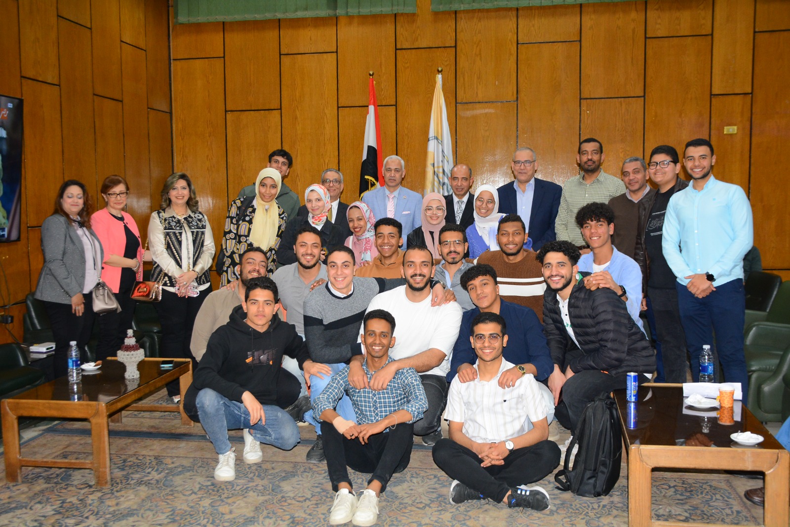 The event was attended by Dr. Ahmed Abdul Mawla, vice president of the University for education and Student Affairs, Dr. Alaa Abdul Hafeez, dean of the Faculty of Commerce, Dr. Mohammed Adawi, vice dean of the college for education and Student Affairs, Dr. Amal Al-Dali, vice dean of the college for community service and Environmental Development, Dr. Marwa Bakr, coordinator of student activities, Dr. Haitham Ibrahim, Director General of the General Administration of student welfare, professor Tarek Sherit, director of the student welfare department at the college, student Abdul Rahman Mustafa, president of the Students ' Union of the Faculty of Commerce, his deputy Mohammed Khader, a number of faculty members, their assistants, administrative leaders, college staff, ICT institute leaders, and a number of companies in Assiut.