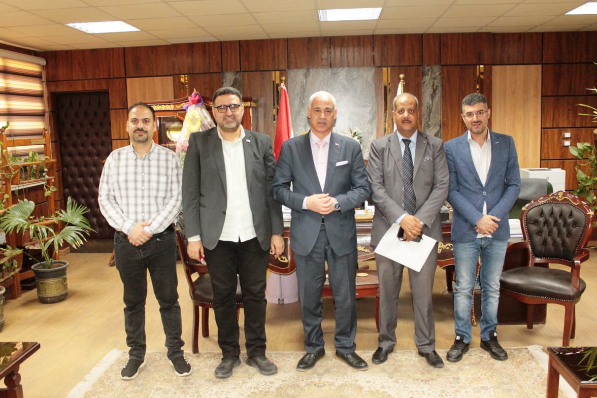 Dr. Ahmed Abdulmoula, vice president of the University for education and Student Affairs, received the delegation of the committee in charge of following up the aptitude tests, which included: Dr. Abdul Rahman Radwan, vice dean of the Faculty of education at South Valley University, Mr. Ahmed Mohammed Mahmoud, and Mr. Baher Mohammed Abdel Hafiz, from the Supreme Council of universities, in the presence of Dr. Mohammed Helmy hefnawi, dean of the Faculty of Fine Arts.