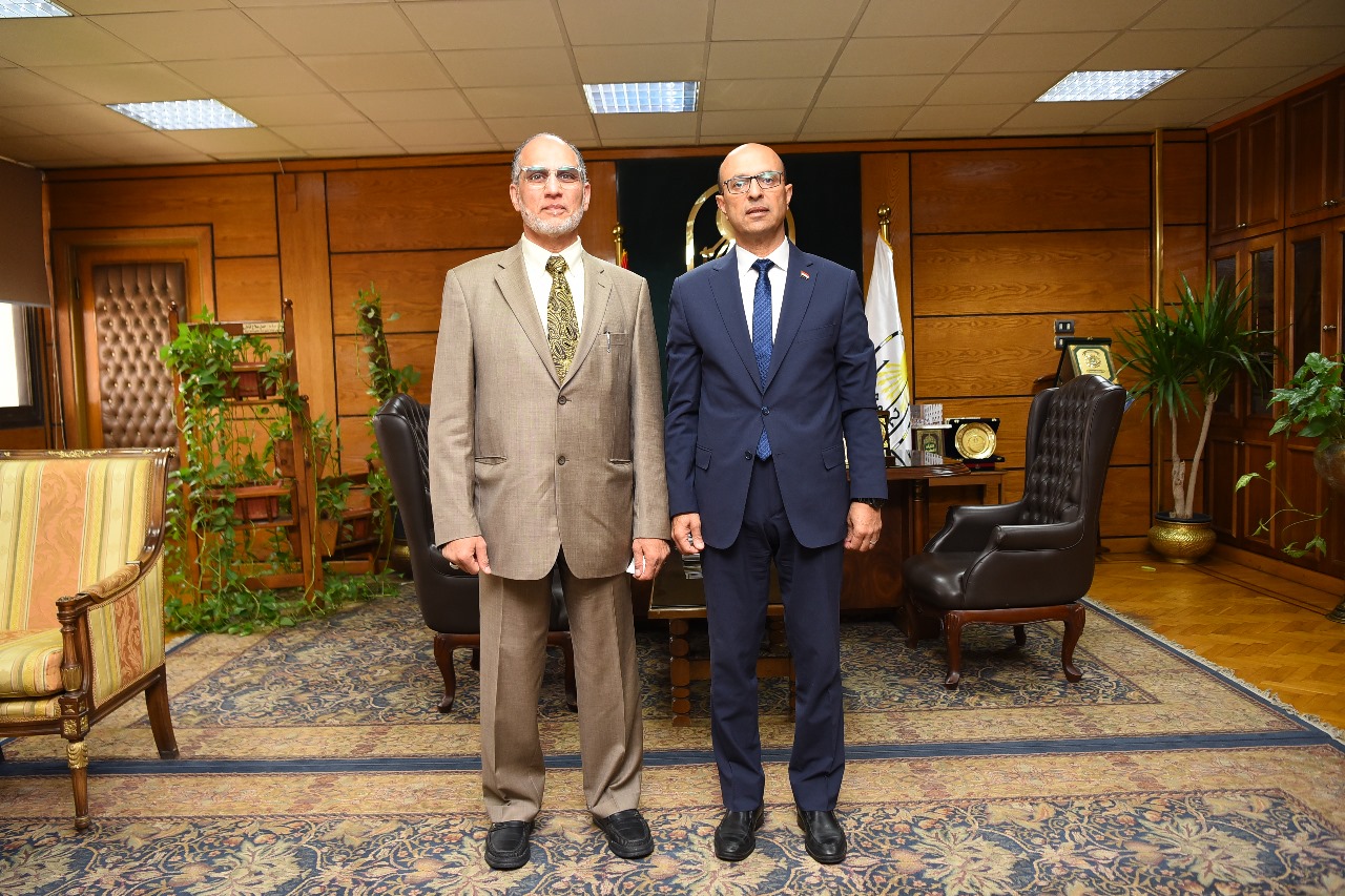 الدكتور المنشاوي يستقبل الدكتور خالد العطاس خبير أمراض قلب الأطفال ورئيس مركز أم القرى بمكة المكرمة ويصطحبه في جولة تفقدية لمستشفى القلب الجامعي ومشروع مستشفى الأورام الجديد