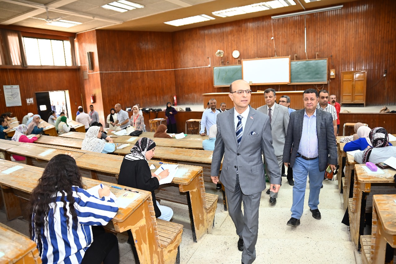 وتفقد رئيس الجامعة لجان امتحانات الفرقتين الأولى والثالثة بمختلف التخصصات، واستمع إلى آراء عدد من الطلاب حول طبيعة الأسئلة ومدى توافقها مع ما تم تدريسه وظروف أداء الامتحان.