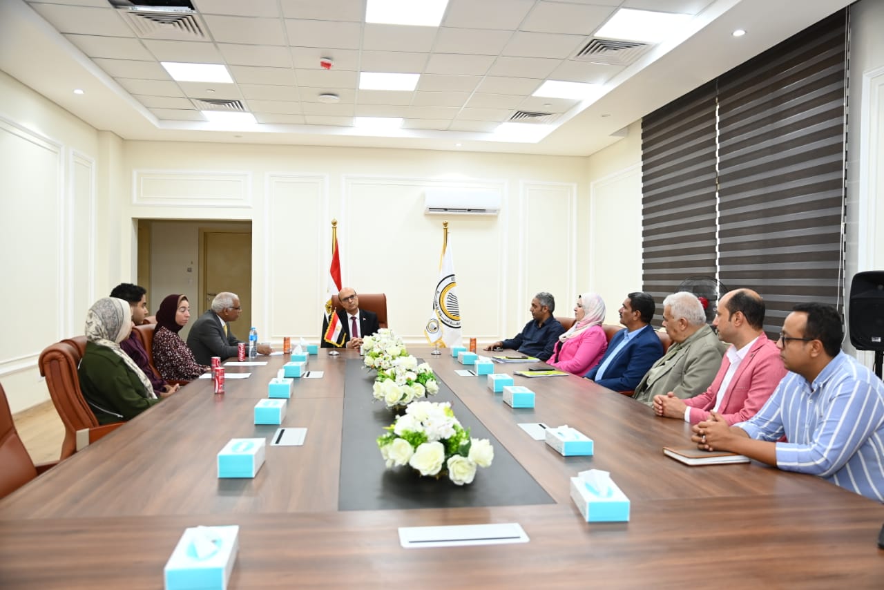 وفي سياق متصل، أشار الدكتور نوبي محمد حسن إلى أن الدكتور أحمد المنشاوي استقبل عقب الاجتماع وفدًا إداريًا ممثلاً عن جامعة الوادي الجديد الأهلية، برئاسة الأستاذ ماهر حسين أمين عام الجامعة، وبحضور الأستاذ مصطفى حسن أمين عام جامعة أسيوط الأهلية، والدكتورة جيهان درويش مدير شئون التعليم بالجامعة.