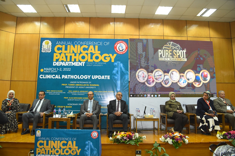 جاء ذلك خلال افتتاح سيادته لوقائع المؤتمر الدولى السادس عشر لقسم الباثولوجيا الإكلينيكية بعنوان " الجديد فى الطب المعملى " و ذلك بحضور الدكتور أحمد المنشاوي نائب رئيس الجامعة لشئون الدراسات العليا و البحوث ، و الدكتورة مها غانم نائب رئيس الجامعة لشئون خدمة المجتمع و تنمية البيئة ، والدكتور علاء عطية عميد كلية الطب و رئيس مجلس إدارة مستشفيات أسيوط الجامعية ،و الدكتور أيهاب فوزى المدير التنفيذي للمستشفيات الجامعية ،و الدكتور علاء عبد المنعم مدير المستشفى الجامعي الرئيسى ، والدكتورة أماني عمر وكيل كلية الطب لشئون التعليم و الطلاب ، والدكتور أسامة بكر والدكتورة لبنى تاج الدين رؤساء شرف للمؤتمر، والدكتورة عزه عز الدين رئيس القسم الباثولوجيا الإكلينيكية و رئيس المؤتمر ، و الدكتورة هبة راشد الأستاذ بقسم الباثولوجيا الإكلينيكية و منسق عام المؤتمر ، ولفيف من أعضاء هيئة التدريس بقسم الباثولوجيا الإكلينيكية و الأقسام الطبية الأخرى و بمشاركة نخبة من الأساتذة من مختلف الجامعات المصرية .