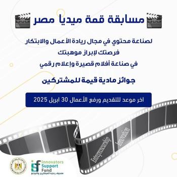 أعلنت وزارة التعليم العالي والبحث العلمي، برعاية الدكتور أيمن عاشور، عن مد فترة التقديم في مسابقة "قمة ميديا مصر" حتى 30 أبريل 2025م، وذلك من خلال صندوق رعاية المبتكرين والنوابغ.