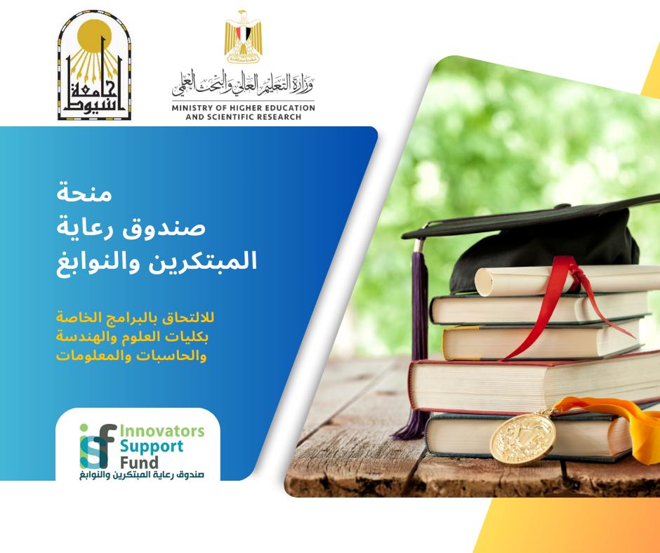 The Council of Assiut University, chaired by Dr. Ahmed El-Minshawy, President of the University, decided to approve the continuation of the university, in cooperation with the Innovators and Innovations Welfare Fund (ISF), to provide full scholarships to outstanding students in high school, or equivalent graduates of 2024 AD, accepted and enrolled in the faculties of science, engineering, computer and information programs, during this academic year 2025/2024, which covers the entire duration of the study.