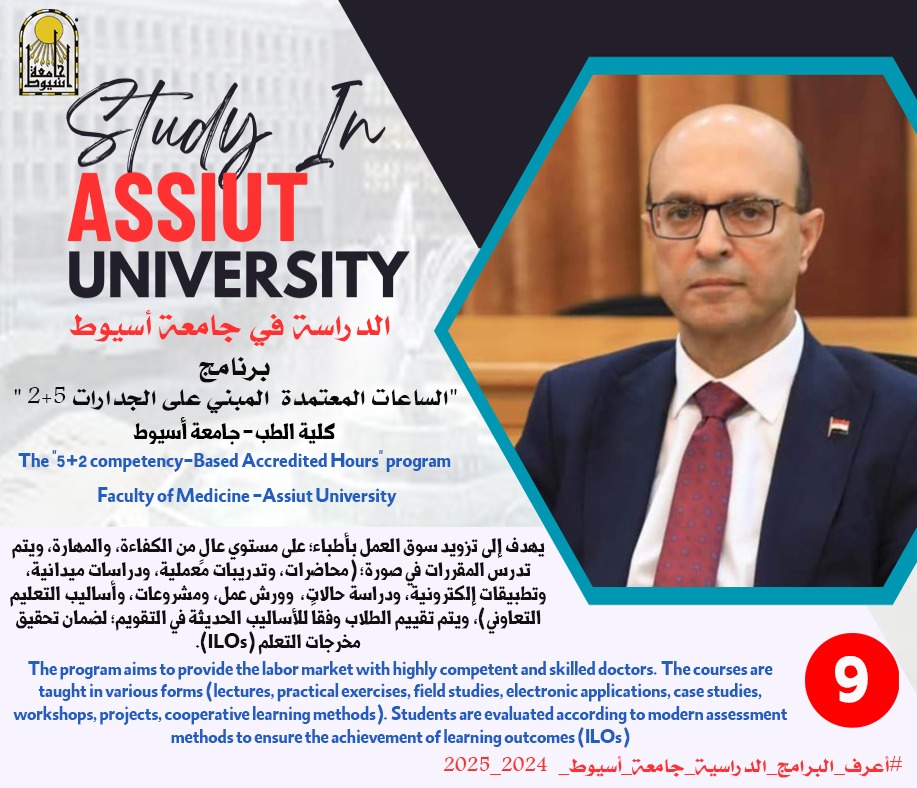 Each student is assigned an assistant faculty member to monitor them during practical training. Students instructed according to foreign equivalent systems and prepared for equivalence exams. Their performance is evaluated using the GPA system, and the cumulative point average CGPA is calculated. Furthermore, students are can be transferred from any university to the Faculty of Medicine at Assiut University according to the program's specific system conditins .
