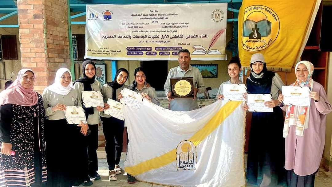 Prof. Ahmed El-Minshawy, President of Assiut University, congratulated the university's female students who won several first-place positions during their participation in the first cultural beach meeting for university and institute . The event was held at Baltim Summer Camp, under the supervision of Dr. Ayman Ashour, Minister of Higher Education and Scientific Research, from August 21st to 25th of this year.
