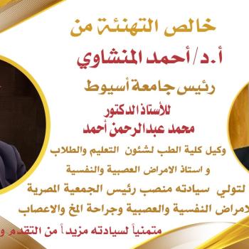 Prof. Ahmed El-Minshawy, President of Assiut University, congratulates Dr. Mohamed Abdulrahman, Professor of Neuropsychiatry and Vice Dean of the Faculty of Medicine for Education and Student Affairs…