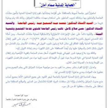 The civil protection in Assiut university ensures the safety of the buildings in the university and trains its employees to use fire fighters under the supervision of the president of the university…
