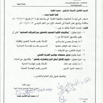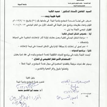 The society development and enviromental service recieved some recommedations for its committee in its session no. 31 that was held in 14-9-2013 for the academic year 2013/2014