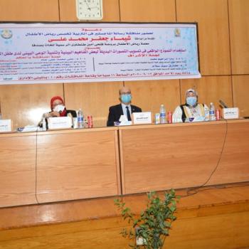 Vice-president of Assiut University for graduate studies and research affairs attends the discussion of the first master's thesis in the Faculty of kindergarten Education.