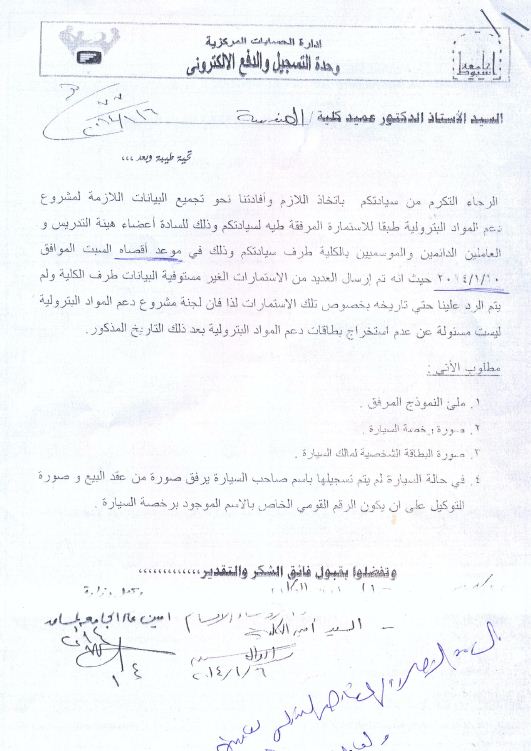 Online registration system unit sent an application for the member staff and the employees  to obtain the smart card system for fuel purchases before the deadline 10-1-2014. The unit announces that some applications are not completed yet and the unit will not be responsible to send any card after the deadline.