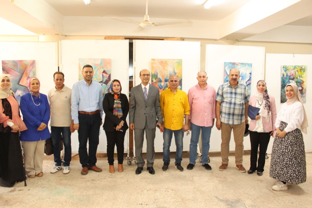 For his part, Prof. El -Minshawi expressed his admiration for the offered paintings that indicate excellence, real creativity and knowledge of the developments of art and culture, stressing that the full support from the University Administration of the Faculty of Fine Arts, whether for students and researchers in the journey of learning and creativity, or for faculty members in their endeavor to progress at the academic professional level, as well as in playing their enlightening role in society and their contribution to upgrading its artistic level by supporting artistic talents and distinguished ones, believing in the importance of art as a cultural value that contributes to the process of reviving and renaissance of society.