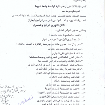 Egyptian Engineers Syndicate will hold an international conference entitled "River Transportation between Reality and Hope" in cooperation with Federal Arab of Engineers. The deadline to deliver the…
