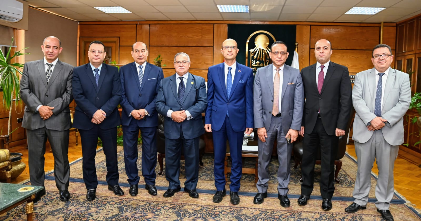 At the end of the meeting, commemorative shields were exchanged between Dr. Ahmed El-Minshawy and consultant Ahmed Abdul Aziz, expressing the spirit of cooperation and mutual appreciation between the two institutions, and looking forward to more joint work in the future.