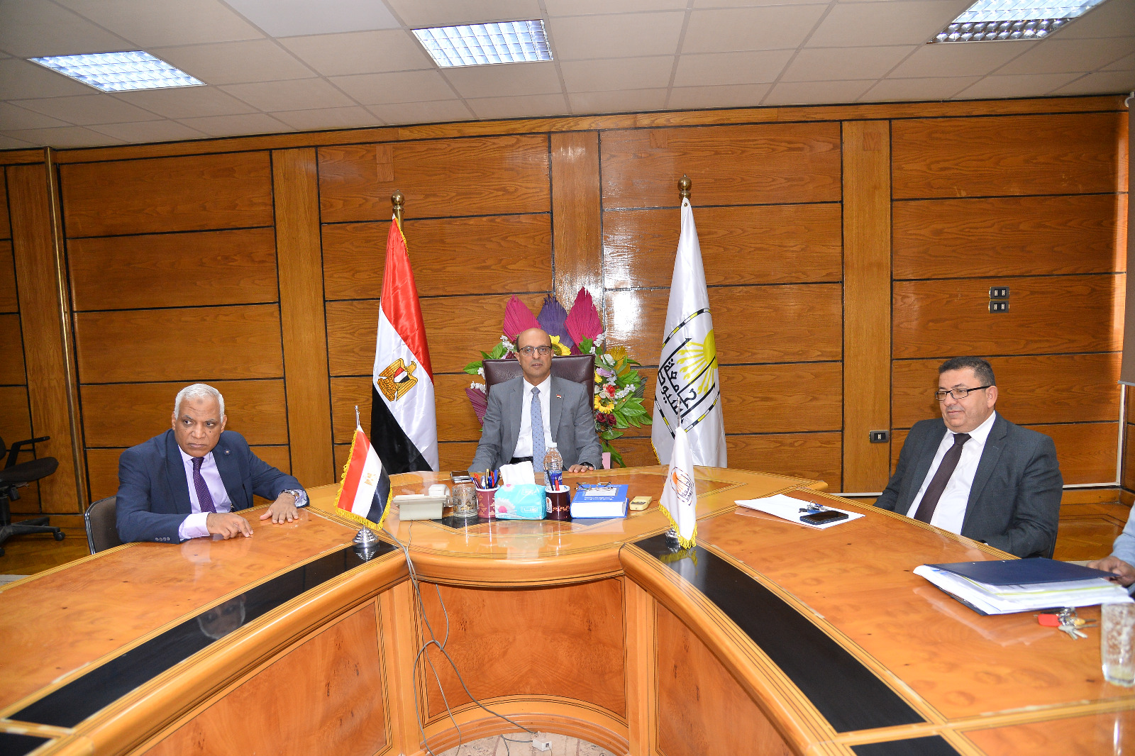 The meeting was attended by Dr. Hassan Al-Hawari, Advisor to the President of the University for University Information Systems Affairs and Decision Support, Dr. Duaib Saber, Legal Advisor to the President of the University, Dr. Tariq Kamal, Supervisor of the Information Center at Assiut Al-Ahliyya University, Professor Mustafa Hassan, Secretary of Al-Ahliyya University, and academic and administrative work leaders of Assiut Al-Ahliya University.