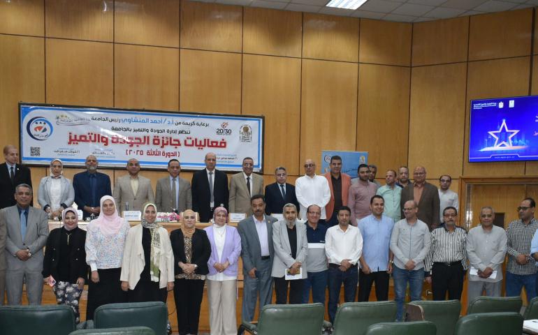 وأكد الدكتور المنشاوي، أن جائزة الجودة والتميز تعد إحدى الأدوات المؤسسية المهمة لترسيخ مفاهيم الجودة، وتعزيز التميز داخل الجامعة، مشيداً بورشة العمل التي تهدف إلى تعزيز الشفافية، وتكافؤ الفرص، من خلال توضيح معايير التقييم وآلياته لجميع المشاركين.
