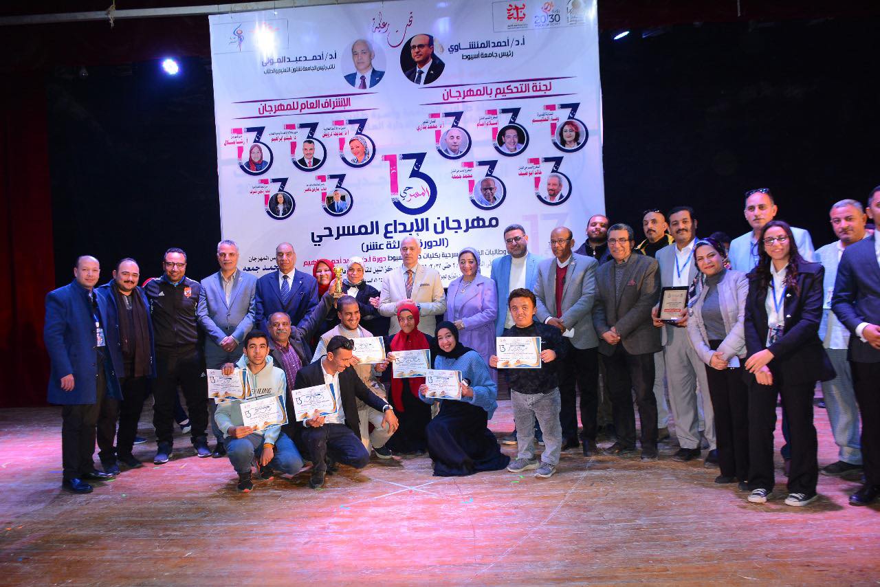 شهدت جامعة أسيوط تحت رعاية الدكتور أحمد المنشاوي رئيس الجامعة حفل اختتام مهرجان الابداع المسرحي الثالث عشر دورة (أ.د / سعيد أحمد ابراهيم ) والذي نظمته ادارة الفنون بالادارة العامة لرعاية الشباب