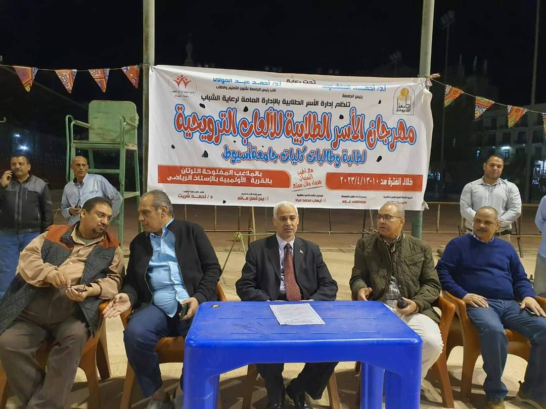 إدارة الأسر الطلابية .. " حفل ختام مهرجان الأسر الطلابية للألعاب الترويحية " من حفل الختام بين كليات الجامعة وذلك خلال فترة ١٠ ابريل حتى يوم ١٣ابريل ٢٠٢٣م بملاعب الترتان بالقرية الأولمبية واعلان فوزكلية التربية الرياضية بالمركز الاول وكلية التربية بالمركز الثاني وكلية الترببة النوعية بالمركز الثالث.