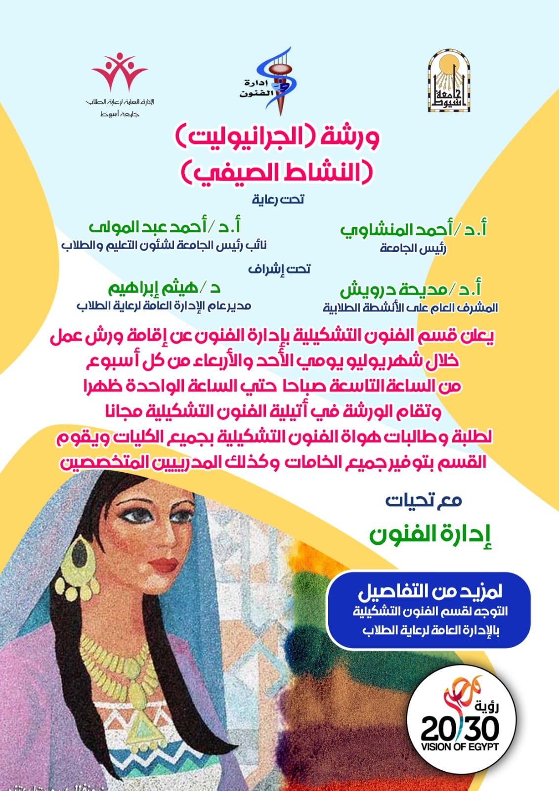 إدارة الفنون بالإدارة العامة لرعاية الطلاب دعوة لمشاركة الطلاب في ورشة (الجرانيوليت) ضمن أنشطه (النشاط الصيفي) بالإدارة العامة لرعاية الطلاب