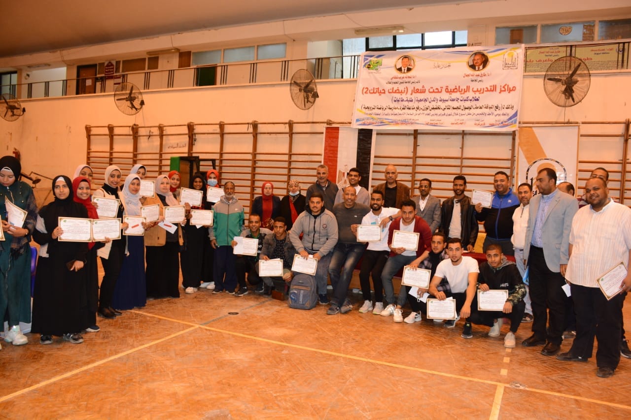 بعض الصور من حفل ختام مراكز التدريب الرياضية تحت شعار " نبضك حياتك 2 " لطلاب كليات جامعة اسيوط والمدن الجامعية وذلك فى رفع اللياقة العامة والوصول للجسم المثالي وتخفيض الوزن وممارسة الرياضة الترويحية والتي أقيمت يوم الخميس الماضي ٣١ مارس ٢٠٢٢ بالصالة المغطاة القديمة