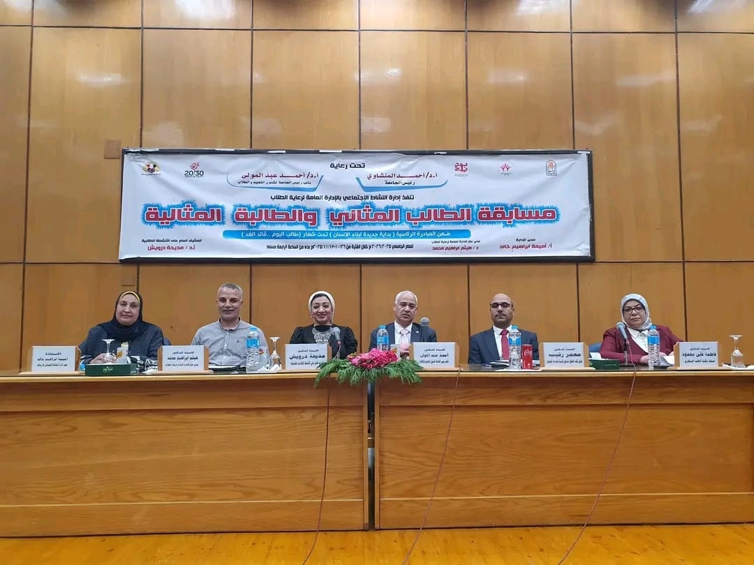 إدارة النشاط الاجتماعي والرحلات بالإدارة العامة لرعاية الطلاب اليوم الرابع من المرحلة التمهيدية ضمن فعاليات مسابقة الطالب والطالبة المثاليين على مستوى كليات الجامعة بقاعة المناقشات بالمبنى الإدارى