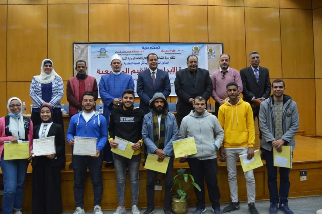 نظمت إدارة النشاط الثقافي تحت رعاية السيد الاستاذ الدكتور طارق الجمال رئيس الجامعة والسيد الاستاذ الدكتور شحاتة غريب شلقامي نائب رئيس الجامعة لشئون التعليم والطلاب وإشراف عام السيد الاستاذ عز المنصورى مدير عام الادارة العامة لرعاية الشاب والدكتورة أسماء عبد الرحمن مستشار النشاط الثقافى للجامعة والذي أقيم تحت عنوان " الحرية الإبداعية والقيم المجتمعية "