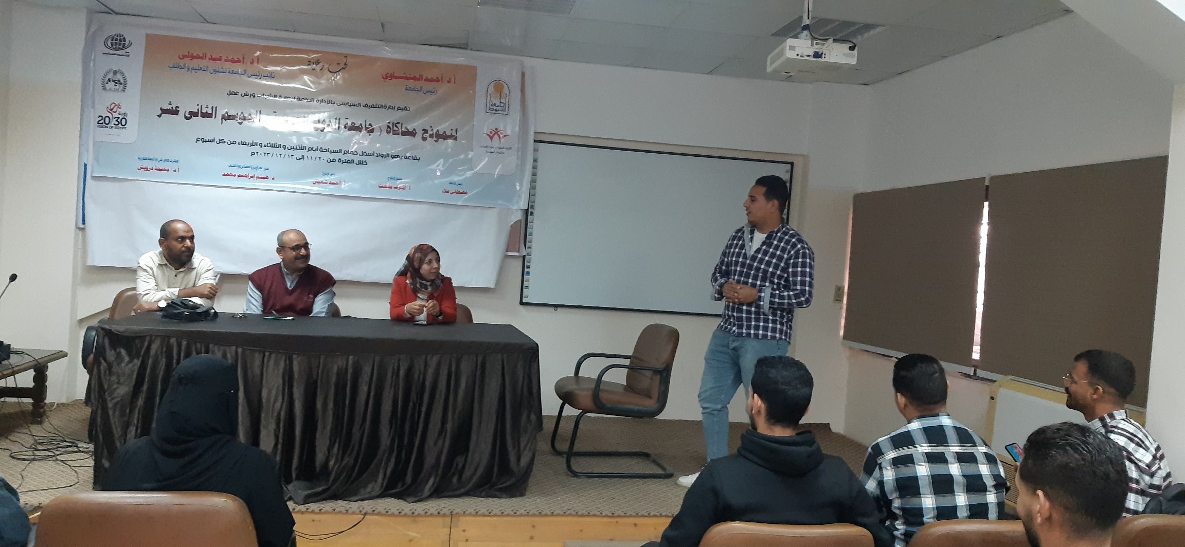 إدارة التثقيف السياسي بالادارة العامة لرعاية الشباب .. فعاليات اليوم الاول من ورش عمل نموذج محاكاة جامعة الدول العربية للموسم الثانى عشر وذلك خلال الفترة من يوم ٢٠ نوفمبر ١٢ ديسمبر٢٠٢٣م