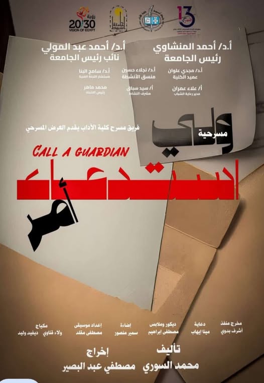 فريق مسرح كلية الآداب – جامعة أسيوط بيقدّم لكم "استدعاء ولي أمر"، عرض مسرحي هيخليك تعيد حساباتك في فكرة السلطة، المسؤولية، والقرارات اللي بتقلب حياتك