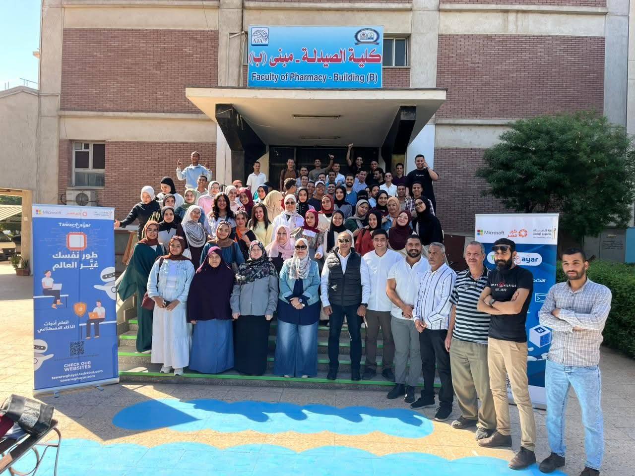 وذلك في رحاب كلية الصيدلة بمعامل الكمبيوتر وقاعات المناقشات حول محاور التحول الرقمي من حيث الذكاء الاصطناعي وريادة الأعمال و الاوفيس ٣٦٥ وهي منحة مقدمة من وزارة الاتصالات وتكنولوجيا المعلومات وبمشاركة طلابية من جميع كليات جامعة أسيوط خلال الفترة من ٢٦ / ١٠ إلي ٣٠ / ١٠ من الأحد إلي الخميس من الساعة ٩ صباحا الى الساعه الثانية والنصف ظهراً والقائمين علي التدريب النظري والعملي من الوزارة كالآتي :