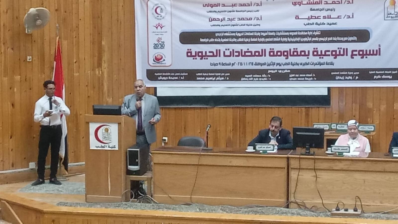 والسادة مديري المستشفيات وأعضاء هيئة التدريس وطلاب وطالبات جامعة أسيوط.
