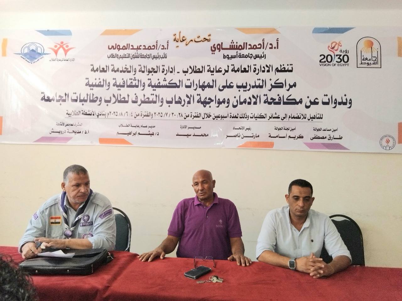 افتتحت اليوم إدارة الجوالة والخدمة العامة الدورة الكشفية الأولى بمركز التدريب على المهارات الكشفية والثقافية والفنية فى الفترة من ٢٨ _ ٣٠ /٢٠٢٥