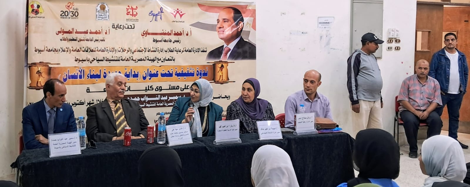 ندوة تثقفية بعنوان" بداية جديدة لبناء الإنسان " في ضوء المبادرات الرئاسية بداية جديدة لبناء الإنسان ضمن رؤية مصر ٢٠٣٠ علي مستوى كليات الجامعة في رحاب كلية التربية للطفولة المبكرة
